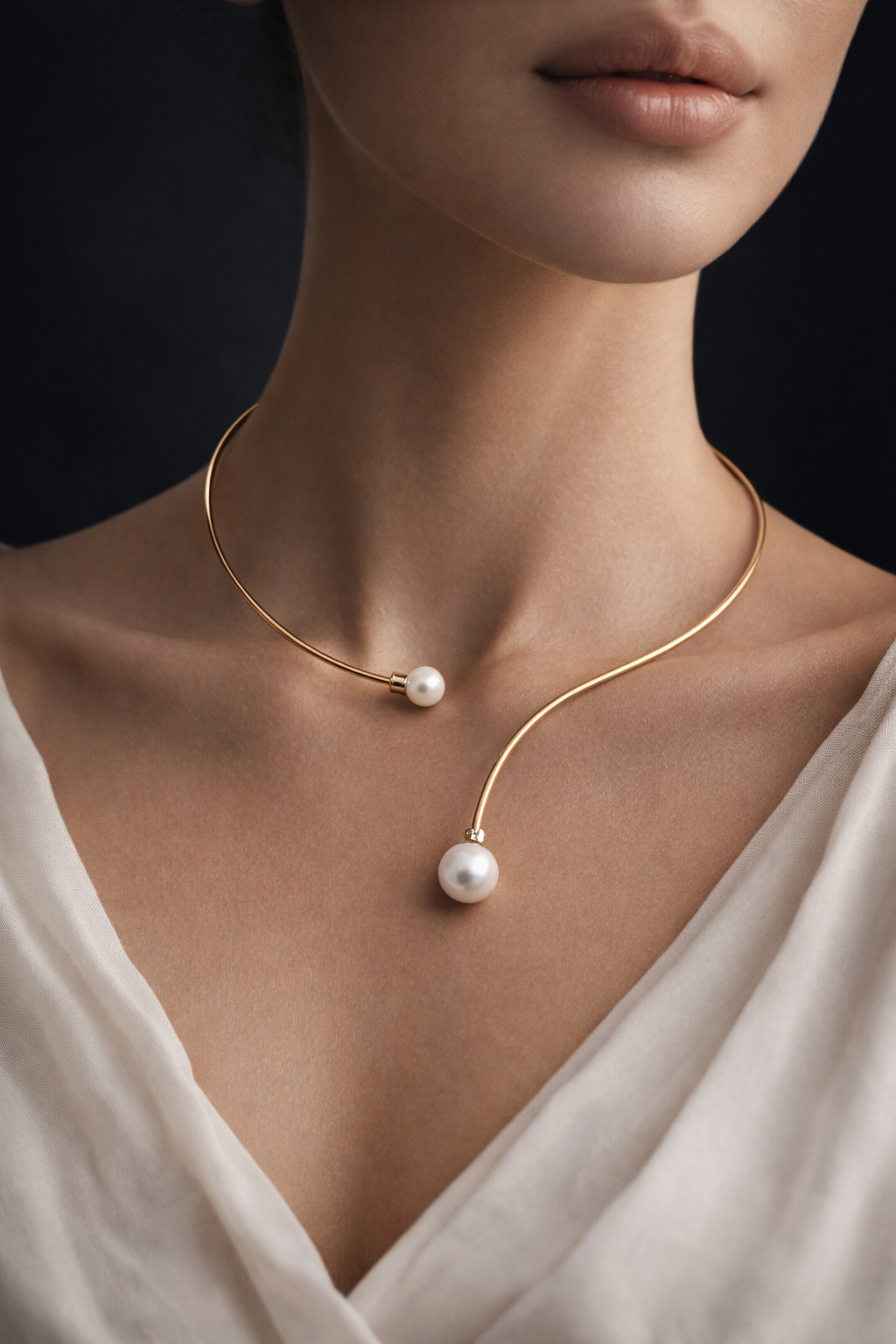گردنبند طوق مرواریدی زنانه، مدل ظریف و مینیمال