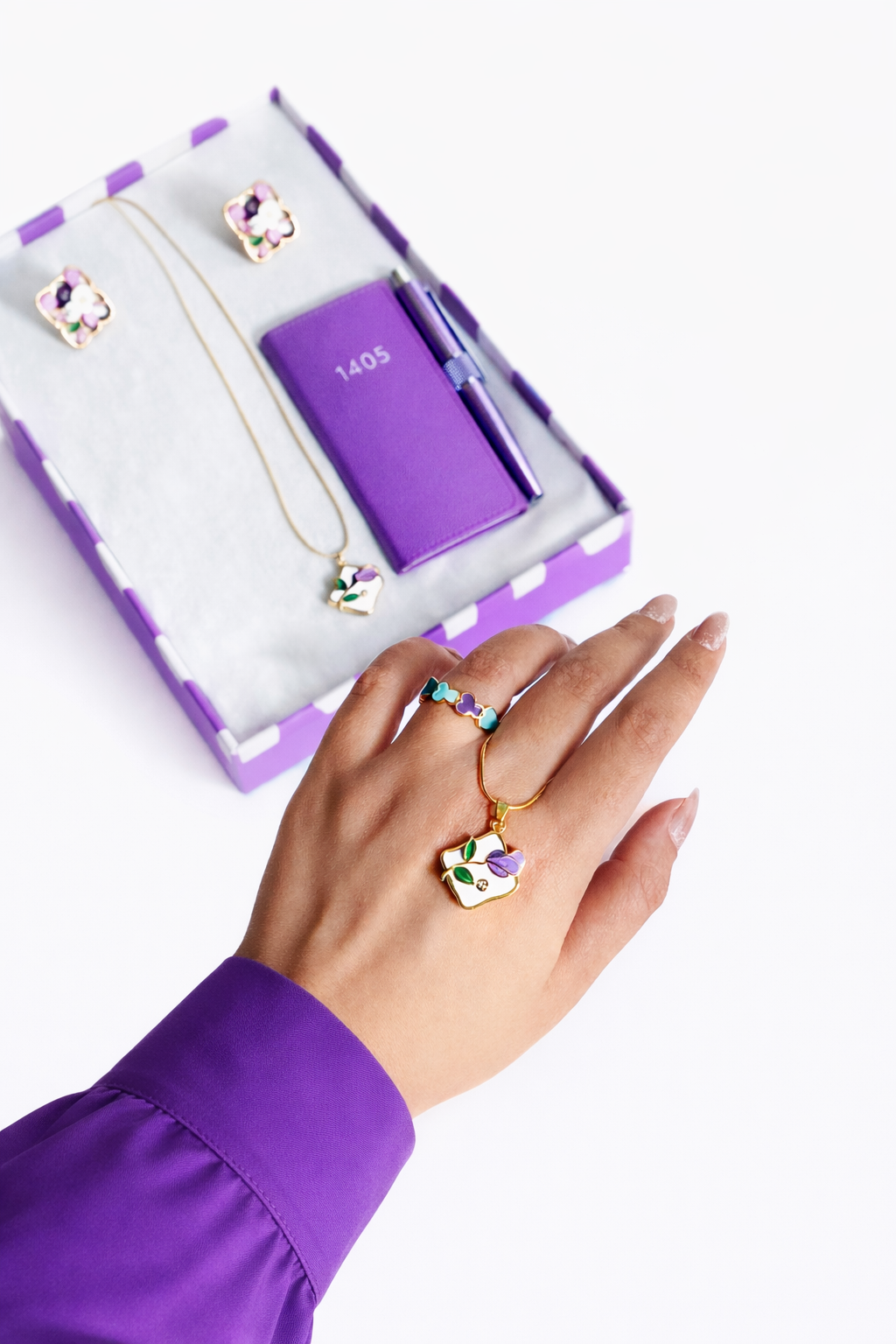کالکشن رازِ ارغوانی(گوشواره،گردنبند،انگشتر)